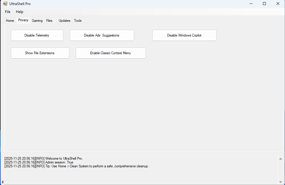Key selling points: portable EXE (no install), one‑click privacy and cleanup, admin‑ready tools, and clear logs for accountability. Ideal for technicians, power users, and players who want a cleaner, faster Windows experience.