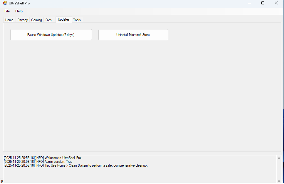 - Windows Update Control — Pause updates for a set period and remove Microsoft Store when needed.